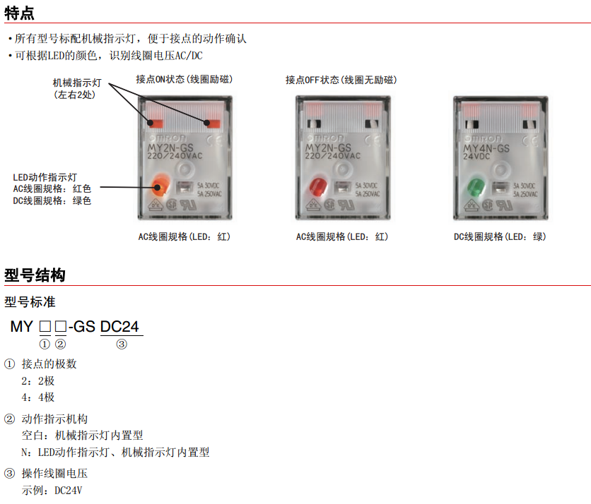 根據(jù)LED動作指示燈的顏色,可識別AC線圈規(guī)格、DC線圈規(guī)格