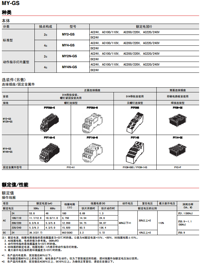 歐姆龍繼電器MY-GS系列中間繼電器