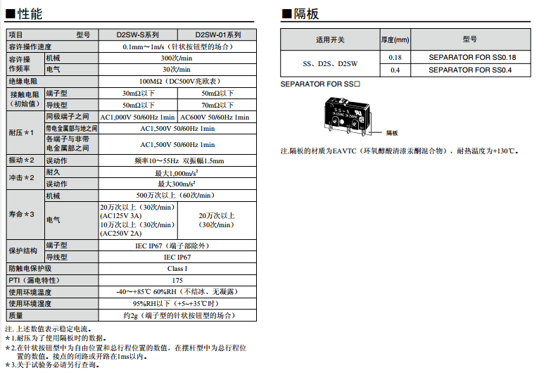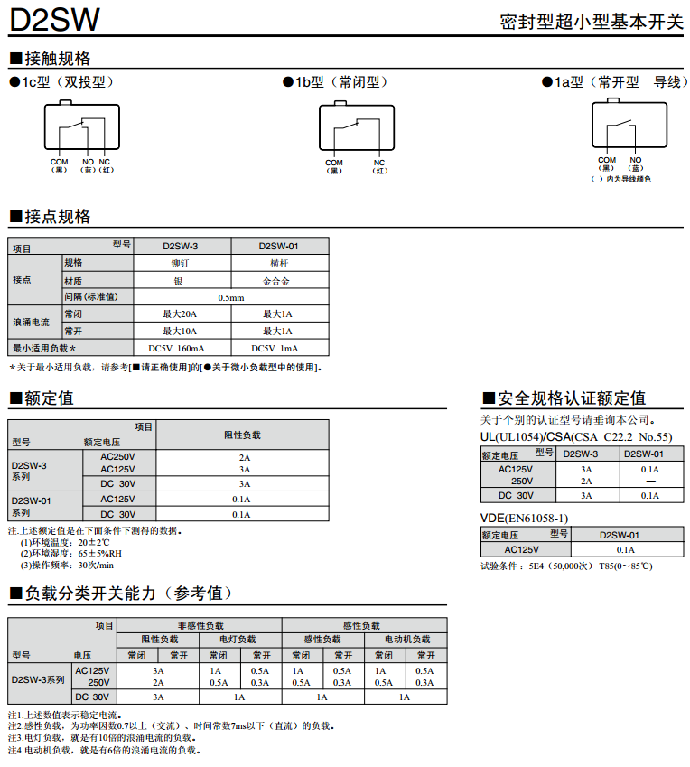 歐姆龍微動開關(guān)D2SW系列產(chǎn)品參數(shù):
